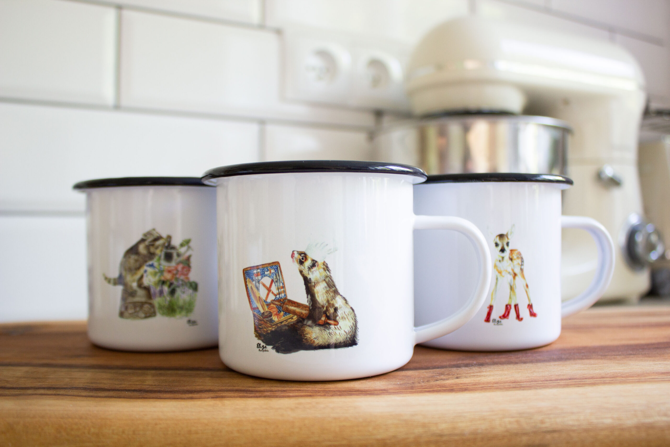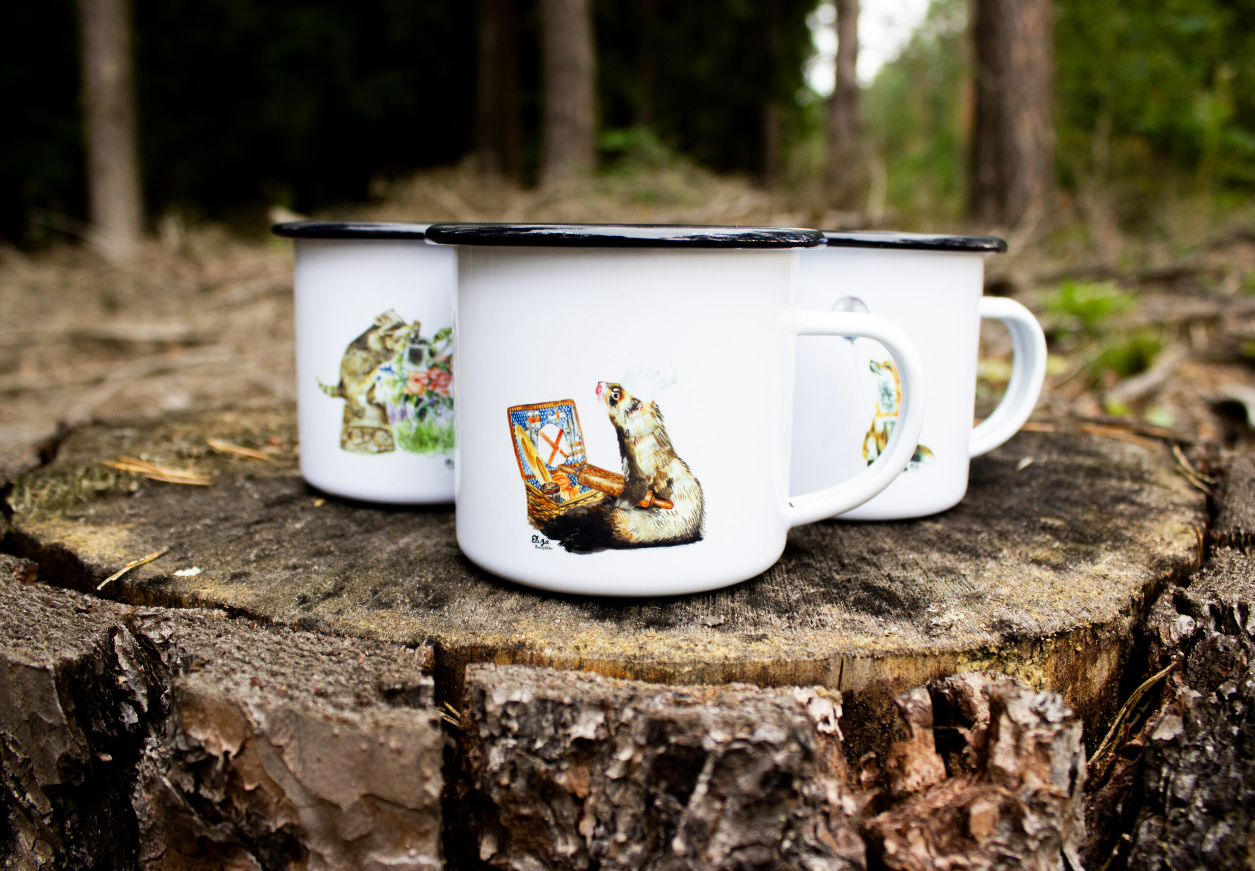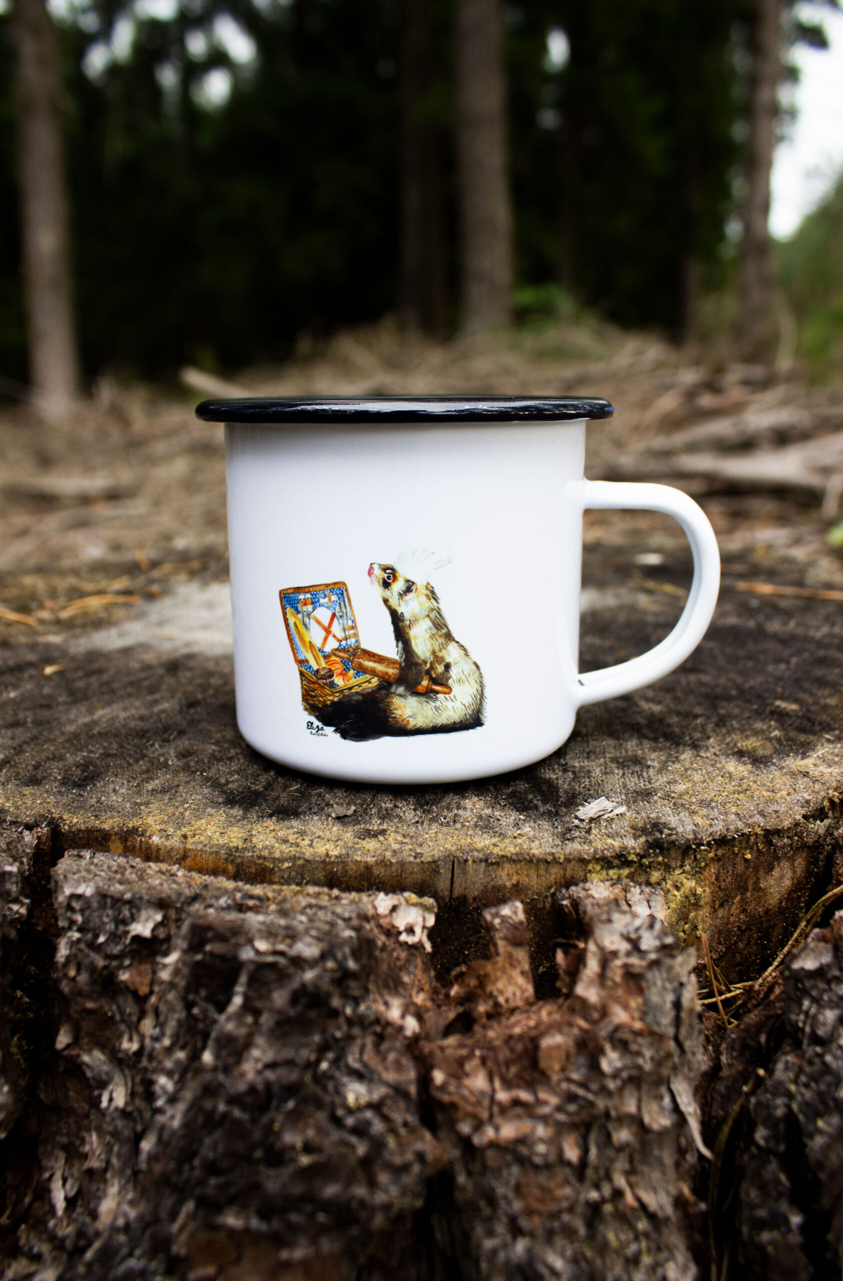 Ferret Enamel Camping Mug size 330 ml. Ferret is on the both sides of mug for right handed and left handed 😊
