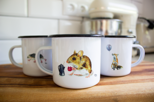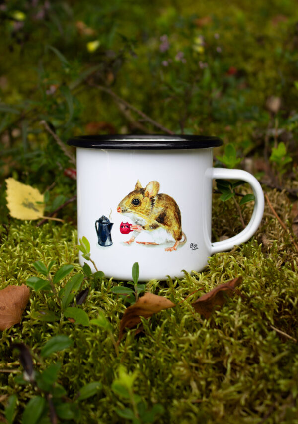 Mouse Enamel Camping Mug size 330 ml. Mouse is on the both sides of mug for right handed and left handed 😊